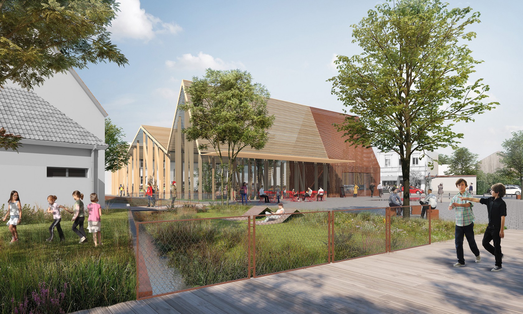 – En articulation, la halle et la nouvelle place forment un nouveau maillon du village. Aux usages maraîchers, nous ajoutons un square d’hiver et une buvette pour affirmer l’intensité urbaine.